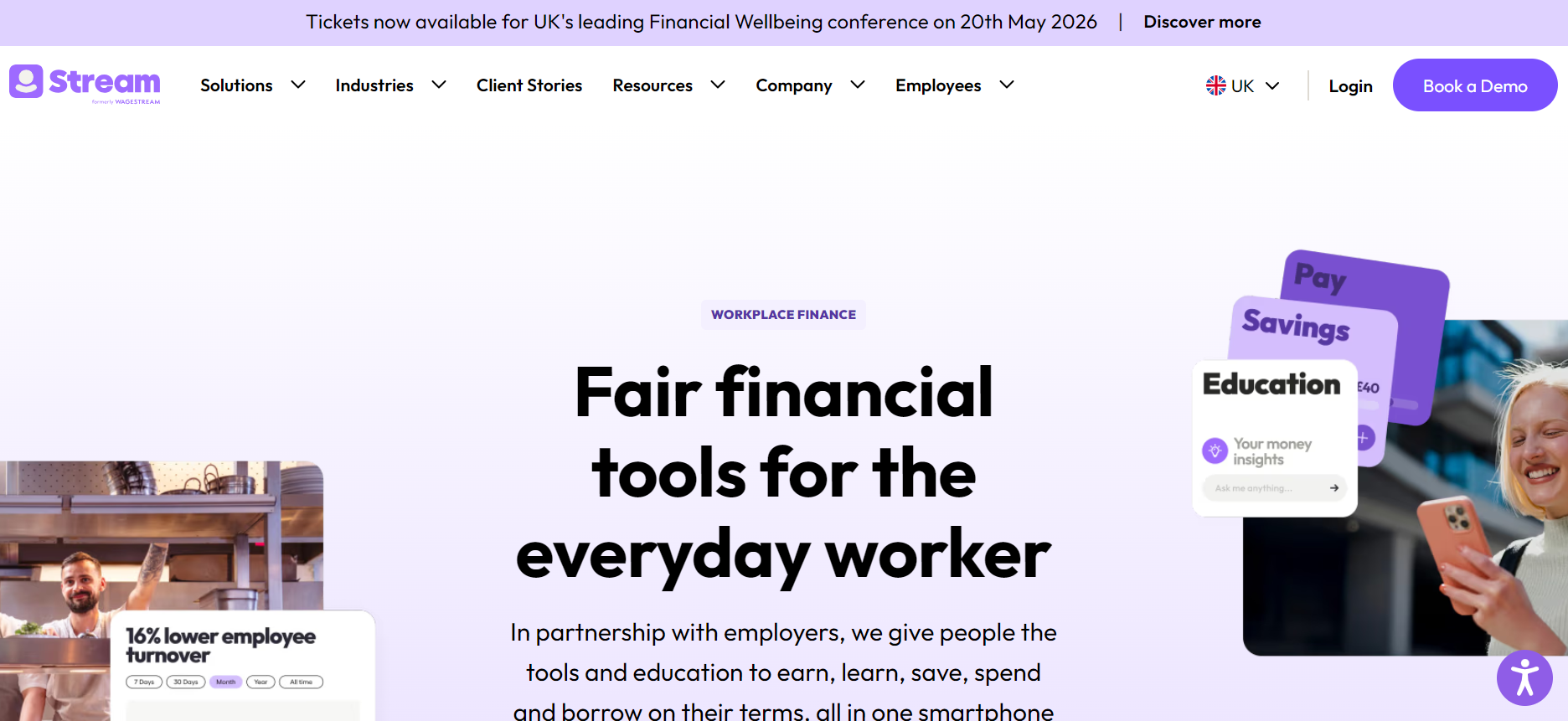 Financial wellness platform allowing employees to track earnings and access wages before payday, integrated directly with corporate payroll systems.